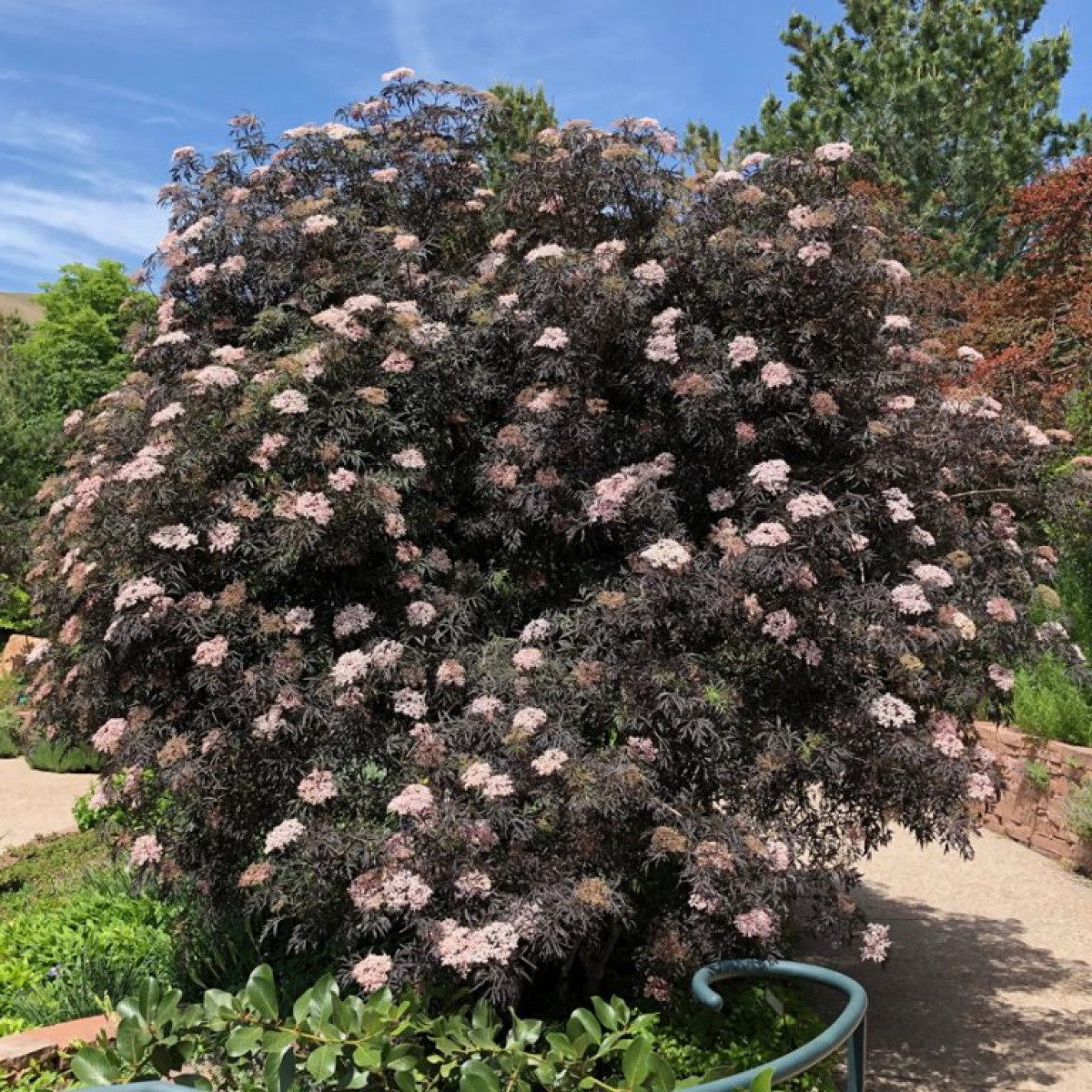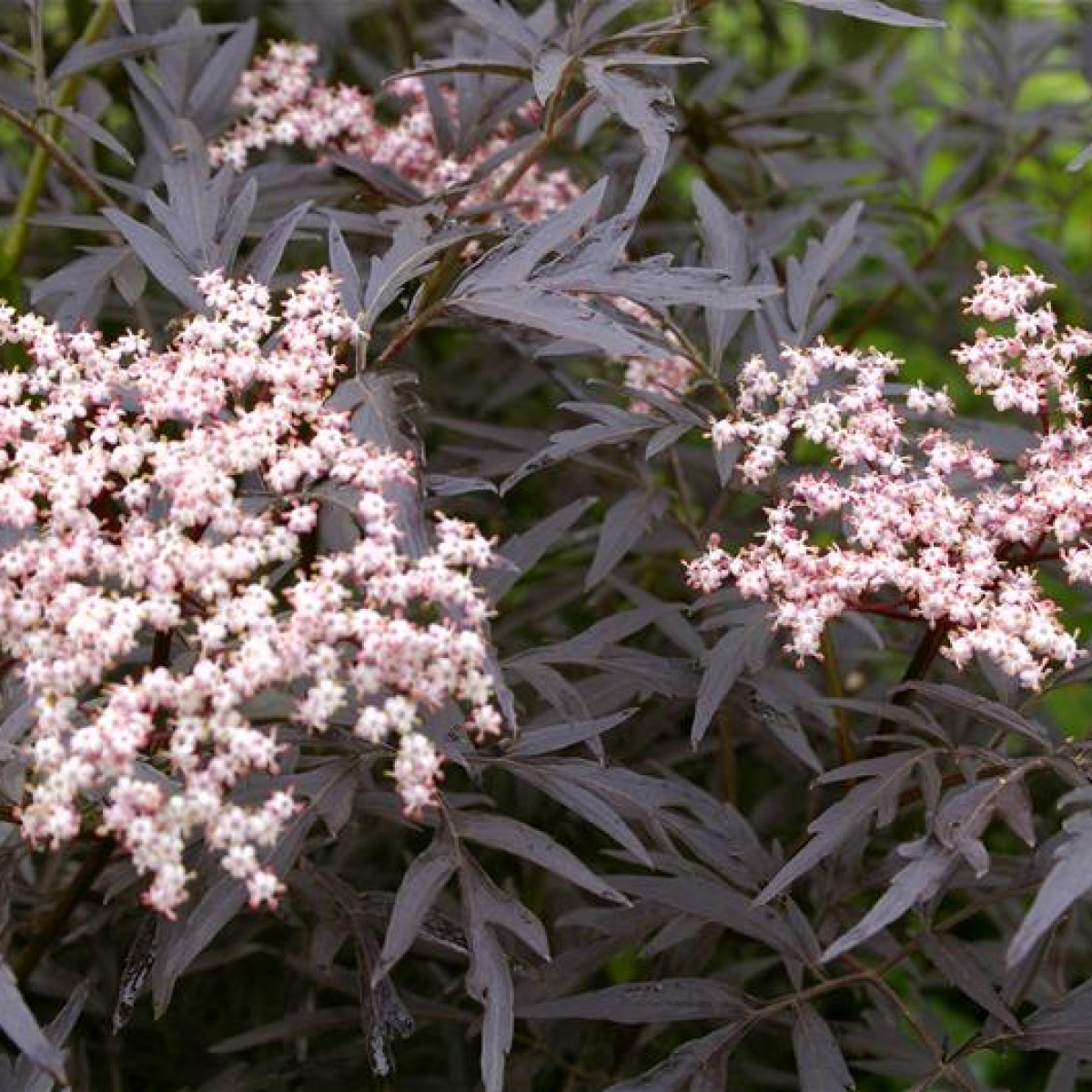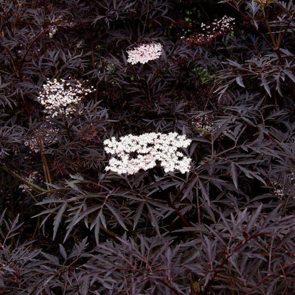 Бузина черная "Black Lace" - сортовой ажурный кустарник с темными листьями и ядовитым характером. В переводе этот сорт называют черной бахромой или узором.
