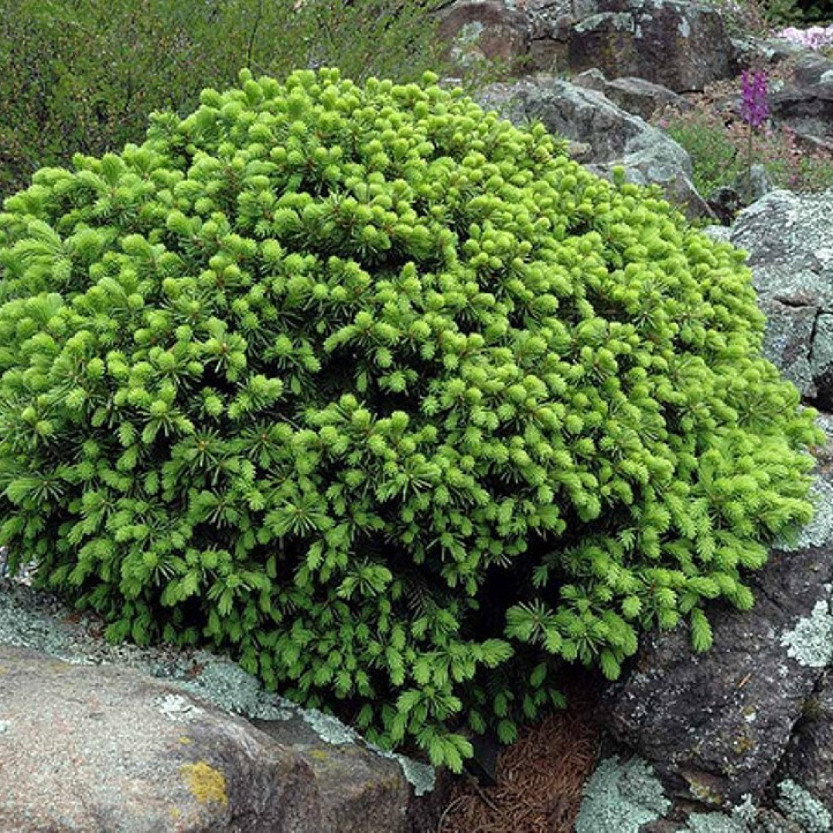 Ель канадская "Echiniformis" - декоративный карликовый сорт необычной формы, напоминающий маленький зеленый холм.