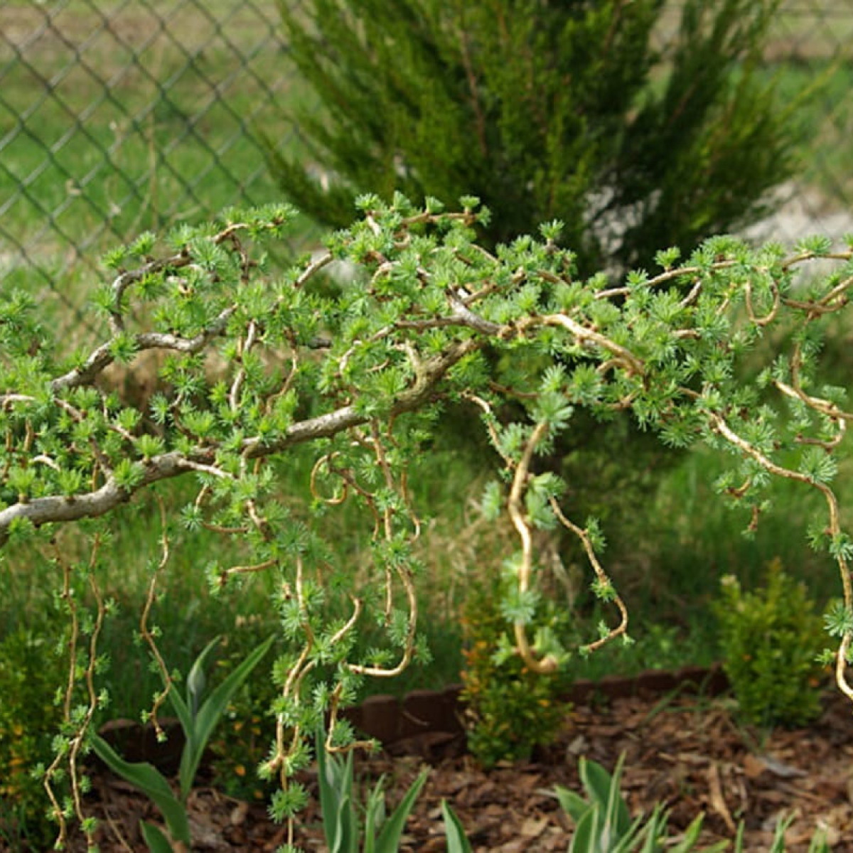 Дерево растет неспешно, достигая во взрослом состоянии 6 метровой высоты.Все ветви этого растения имеют причудливый тип роста - они изгибаются, закручиваются и создают петли совершенно случайным образом. Все это и формирует неподражаемую пирамидальную крону. Хвоинки тонкие, мягкие на ощупь, обладают сизовато-зеленым оттенком в летнее время, осенью окрашиваются в насыщенный золотистый цвет и опадают с наступлением холодов. Она очень похожа по способу роста на иву вавилонскую и её аналоги.