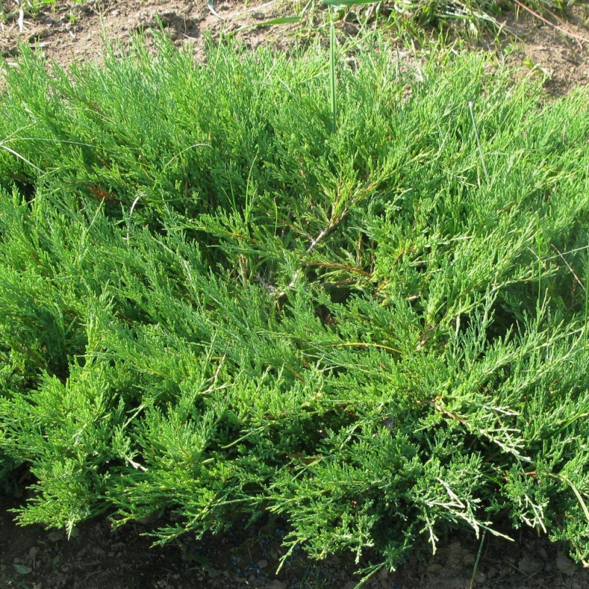 Двудомный стелющийся кустарник до 1,5 м. Хорошо разрастается вширь, образуя плотные густые заросли (за 10 лет его может раздать до 20 м). Молодая хвоя (а также в тени) до 6 мм, в верхней части сизоватая, неколючая, взрослая же чешуйчатая, черепичная. Она содержит эфирные масла и ядовита. Растерев её, вы почувствуете очень резкий запах. Живут хвоинки 3 года. Шишкоягоды некрупные, до 7 мм, черно-сизые, округлые, как правило, содержат две семечки. Созревают в осенний период, а также весной уже следующего года. Размножать его можно как семенами, так и вегетативно.