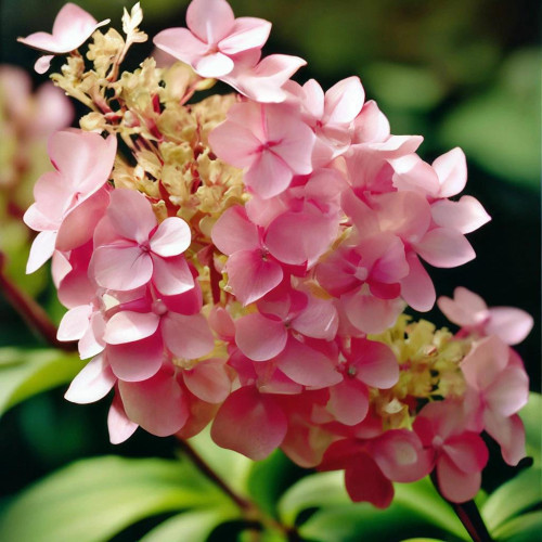 Цветки / плоды — Цветет с июля до сентября. Соцветия с большим количеством стерильных цветков, крупные, конические, сначала чисто-белые, затем становятся пурпурно-розовыми. Высохшие соцветия сохраняются до весны
