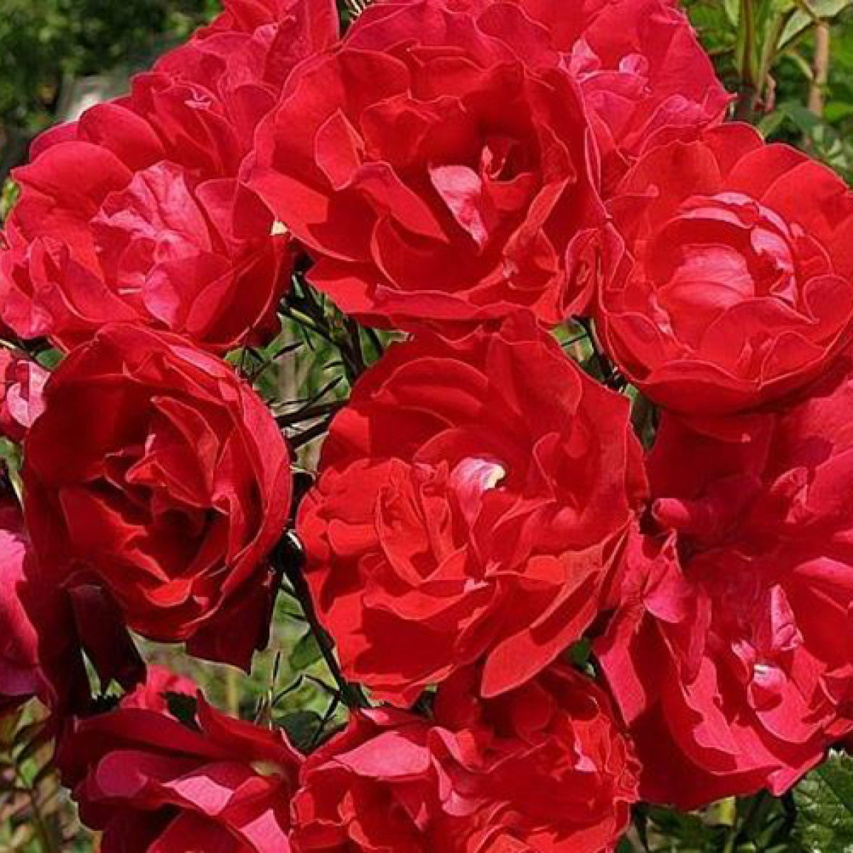 овальные бутоны превращаются в чашевидные полумахровые цветы диаметром 6–8 см с 10–20 лепестками. Соцветия состоят из 5–15 цветков. Цветение обильное и практически непрерывное.