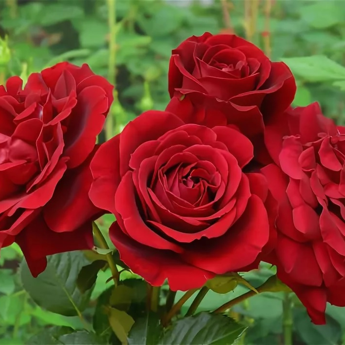 Прямостоячий куст с темно-красными цветками старинной формы. Молодая листва бронзово-красная, позднее темно-зеленая, блестящая. Высота 120-150 см.