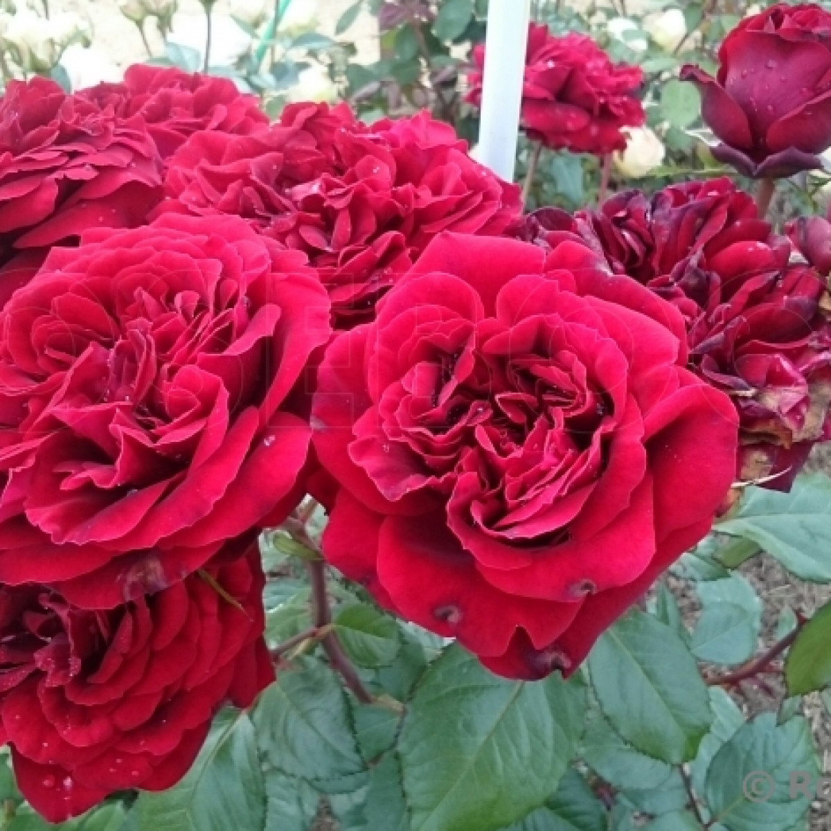 Роза Изабель Ренессанс - очень красивая, нежная роза с крупными красными махровыми цветками. Цветки очень насыщенного, темного красного цвета – чистый цвет, который следует сажать там, где его темные тона будут выделяться среди контрастирующих более светлых оттенков. Красный оживляют белые полосы, иногда появляющиеся в центре цветка. Цветки густомахровые, в форме розетки, иногда квартированные. Позднее цветки раскрываются еще сильнее, и показывают желтые тычинки в центре. Появляются по одному или в плотных кистях по 3-4 шт. У Isabelle Renaissance сильный прямостоячий куст, с крупной, темной листвой, напоминающий чайно-гибридные розы. Не болеет.