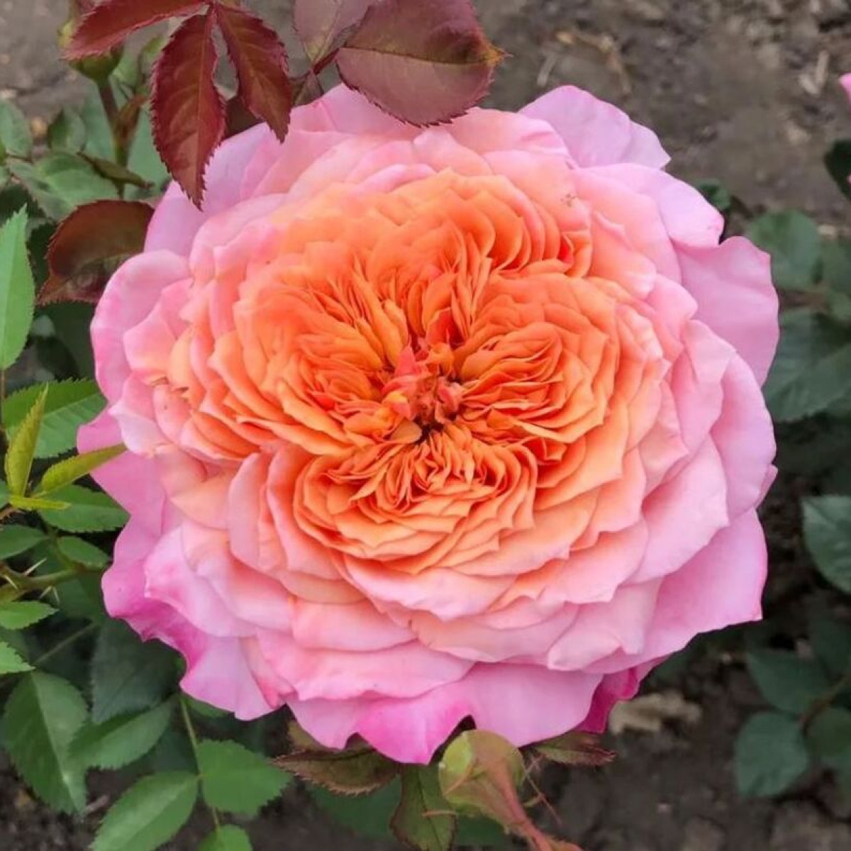 Розовые бутоны раскрываются в абрикосово-персиковые цветки с розовыми наружными лепестками. Лепестки плотные, формируют форму звезды. Рост побегов вертикальный, высота достигает 120 см. Цветение в течение сезона. Сорт может использоваться для срезки. Продолжительность жизни цветка в вазе 10 дней.