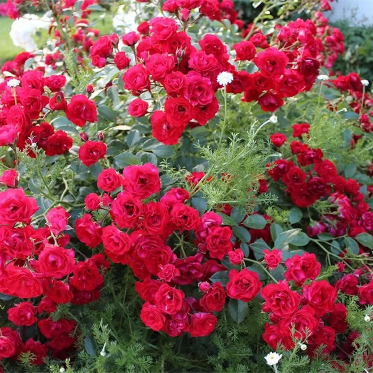 Цветы не осыпаются, засыхая на стеблях или образовывая ярко-красные, декоративные плоды, что придает кусту легкий шарм. Роза не требует обрезки, но проводя такие манипуляции можно сдерживать силу роста куста. Высота около 120 см, длина побега 150-190 см. Ширина куста без обрезки может достигать двух метров. Имеет нарядную темно-зеленую, блестящую листву. Листва темная, блестящая, устойчивая к болезням. Цветет непрерывно все лето и осень.