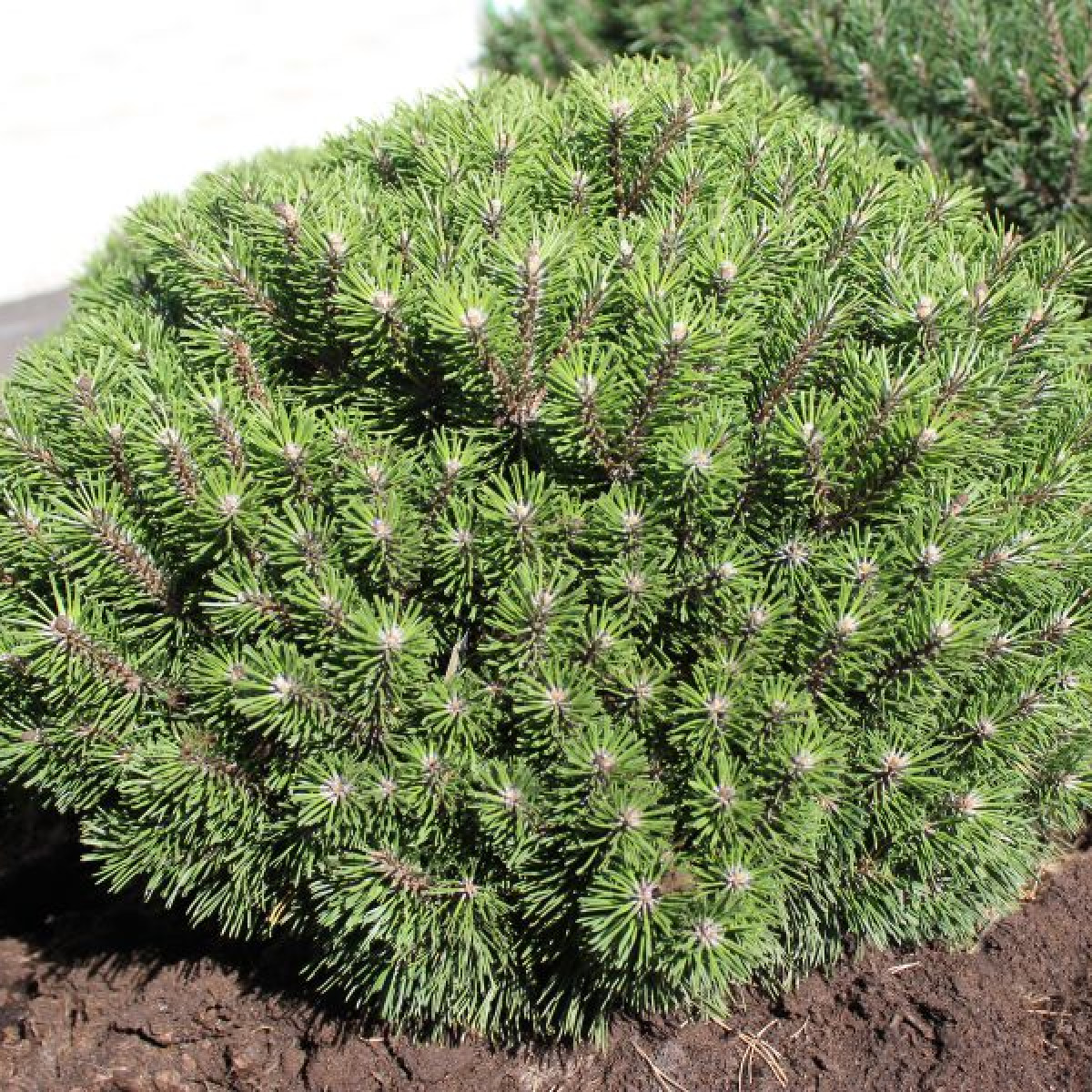 Сосна горная "Benjamin" — карликовое хвойное дерево с шарообразной плотной кроной, формируемой ветвями, растущими вверх. Хвоя пушистая, густая, ярко-зеленого цвета. Шишки в начале созревания зеленые, затем становятся ярко-желтыми и смотрятся весьма эффектно. На побегах взрослого деревца образуются почки белого цвета. Зимой они выделяют смолу.