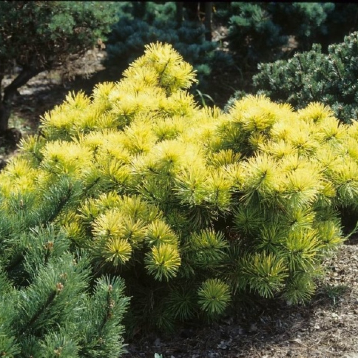 Сосна горная "Zundert" - декоративный карликовый сорт с оригинальной хвоей. Весной, летом и ранней осенью она темно-зеленая, и только кончики разукрашены желтым. С наступлением первых заморозков длинные иголки начинают желтеть, и к зиме становятся ярко-желтыми. Всю зиму желтая сосна украшает сад. Крона плотная, асимметричная, овальная, конусовидная. Растет медленно, не более 10 см в год. В 10 лет ее рост не превышает метра, а диаметр кроны 1,5 м.