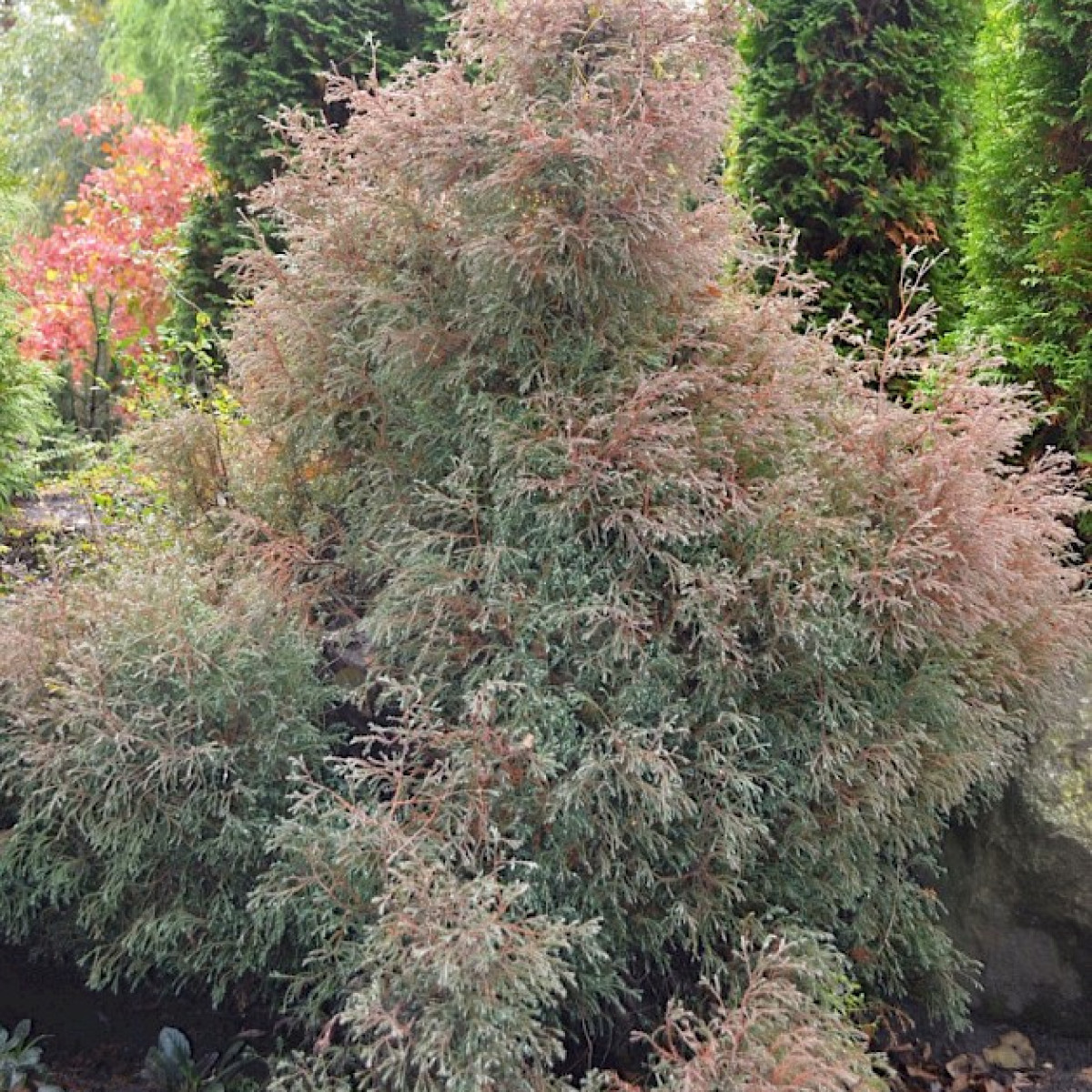 Компактный размер делает тую удобной для использования в различных ландшафтных композициях. Кроме того, она хорошо адаптируется к городскому загрязненному воздуху.