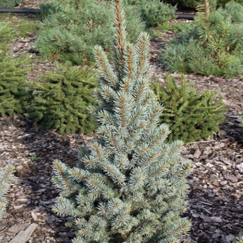 Ель Костер прекрасно смотрится в различных групповых посадках, отлично сочетаясь с другими хвойными растениями в смешанных композициях.