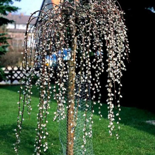 Ива козья "Kilmarnock" – сильно повислый сорт, как правило, ниспадающих на штамб с обилием нисходящих к земле побегов, украшенных мягкими морщинистыми листочками.