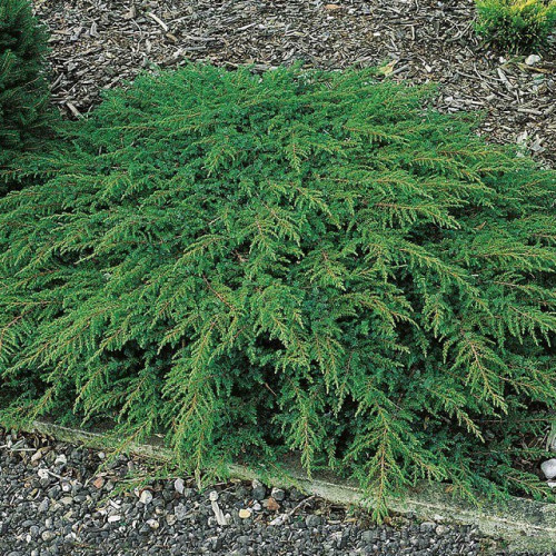 Можжевельник обыкновенный "Green Carpet" - крайне низкий сорт с плоской кроной зеленого цвета с легким восковым налетом.