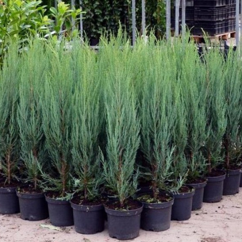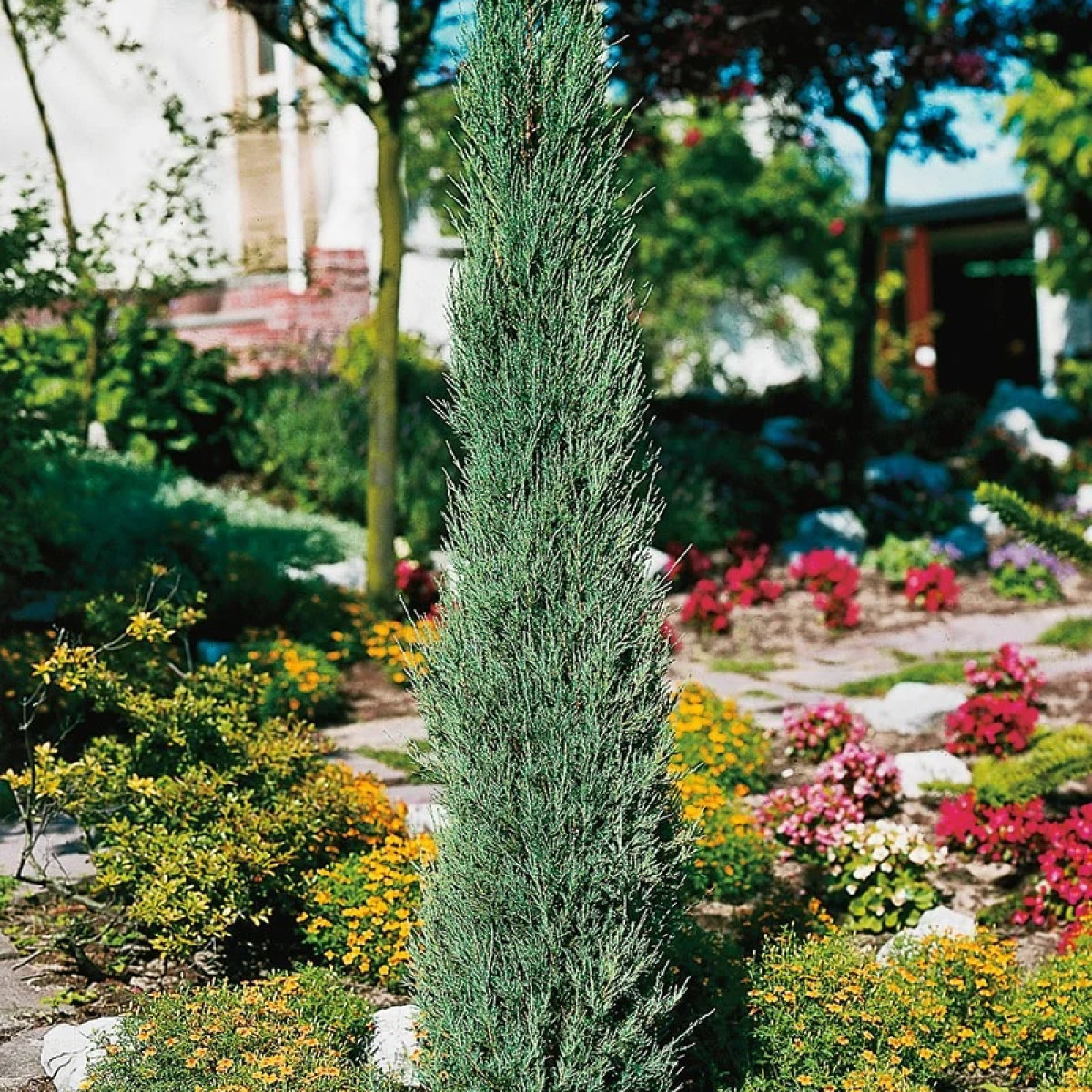 Можжевельник скальный "Skyrocket" - крупный куст или деревце с пирамидальной формой кроны, украшенной голубой плотной хвоей.