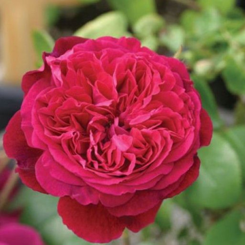 Взрослый куст прямостоящий, с мощными побегами. В высоту достигает 100-120 см., а в ширину 80 см. Данный сорт характеризуется большим количеством шипов. Цветок имеет окрас от гранатового до густо-малинового цвета. Форма цветка чашевидная, в диаметре 9-10 см, густомахровый. Обладает сильным ароматом розового масла. Бутоны распускаются медленно, цветение обильное, начиная с раннего лета и до осенних заморозков, повторноцветущая. Относится к 6 зоне морозостойкости.