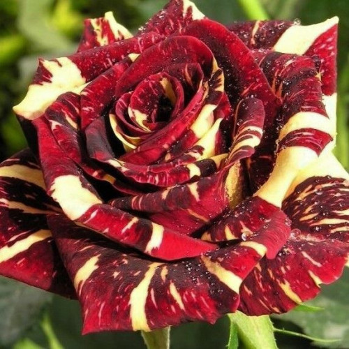 Роза Фокус Покус - бутоны необычной расцветки: на лепестках преобладает темно-красный цвет, сквозь который пробиваются яркие желтые полосы, некоторые цветы покрыты небольшими пятнами. Иногда на одном кусту бывают полностью желтые и полностью бордовые цветы. На одном и том же кусте не бывает полностью одинаковых бутонов. Некоторые из них выраженно тигровые, другие — с короткими штрихами, третьи усыпаны маленькими капельками. Направление и размер полос тоже всегда отличается. Размер цветов небольшой, всего 6-7 см. Оттенки, окрашивающие лепестки, контрастные — желтый яркий и броский, красный — темный, насыщенный. Иногда появляются полосы и пятна белого цвета. Бутоны умеренной махровости, в них до 25 лепестков. Форма розы классическая, внутренние листья плотно прижаты друг к другу, формируют спираль. Куст невысокий 50-60 см, ширина 40 см. Стебли тонкие, но жесткие. Побеги покрыты сочно-зеленой крупной листвой, шипов на розе почти нет. Миниатюрный кустарник не занимает много места, поэтому может устроиться на небольшом участке, где много света и хороший поток свежего воздуха.