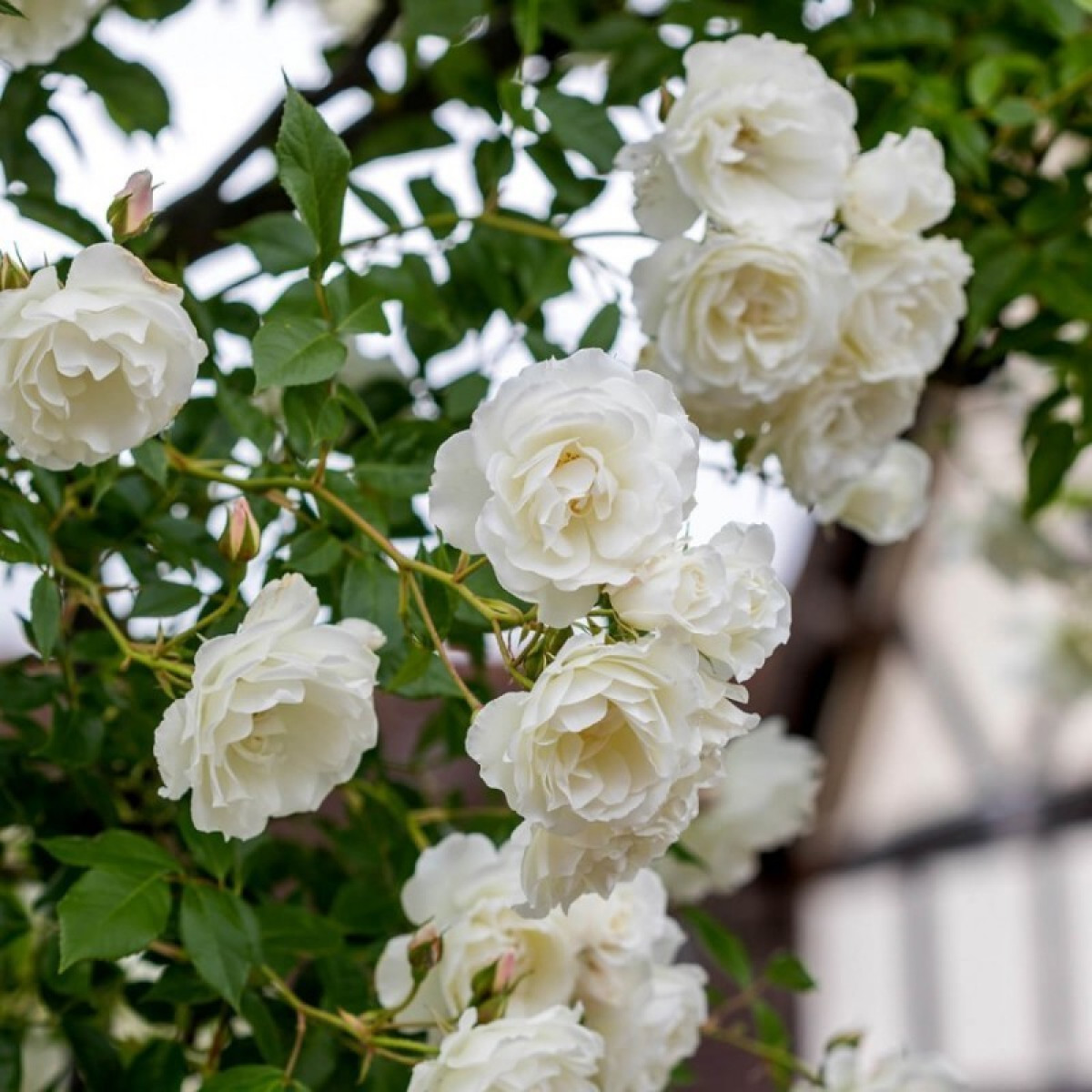 · Побеги длинные и гибкие, позволяют розе плотно оплетать декоративные опоры, арки и стены садовых построек.