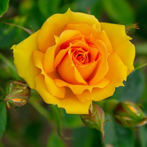 Роза "Kerio" — сорт срезочных роз, выведенный в Голландии. При росте образует компактный куст с мощными прямыми побегами, густо покрытыми темно-зелеными листьями и небольшим количеством шипов. Бутоны одиночные, красивой бокаловидной формы, размером до 10 см в диаметре. Лепестки плотные, насыщенного желтого цвета, при посадке на ярком солнце могут быть нежно-лимонными или с легким розоватым подтоном. При полном раскрытии лепестков на них появляется эффектная шафрановая кайма. Аромат тонкий, с медово-мятными нотками. Цветение повторное, первый раз роза Керио цветет в июне, второй раз — в августе. Ширина взрослых кустов — до 60 см, высота 60-70 см.