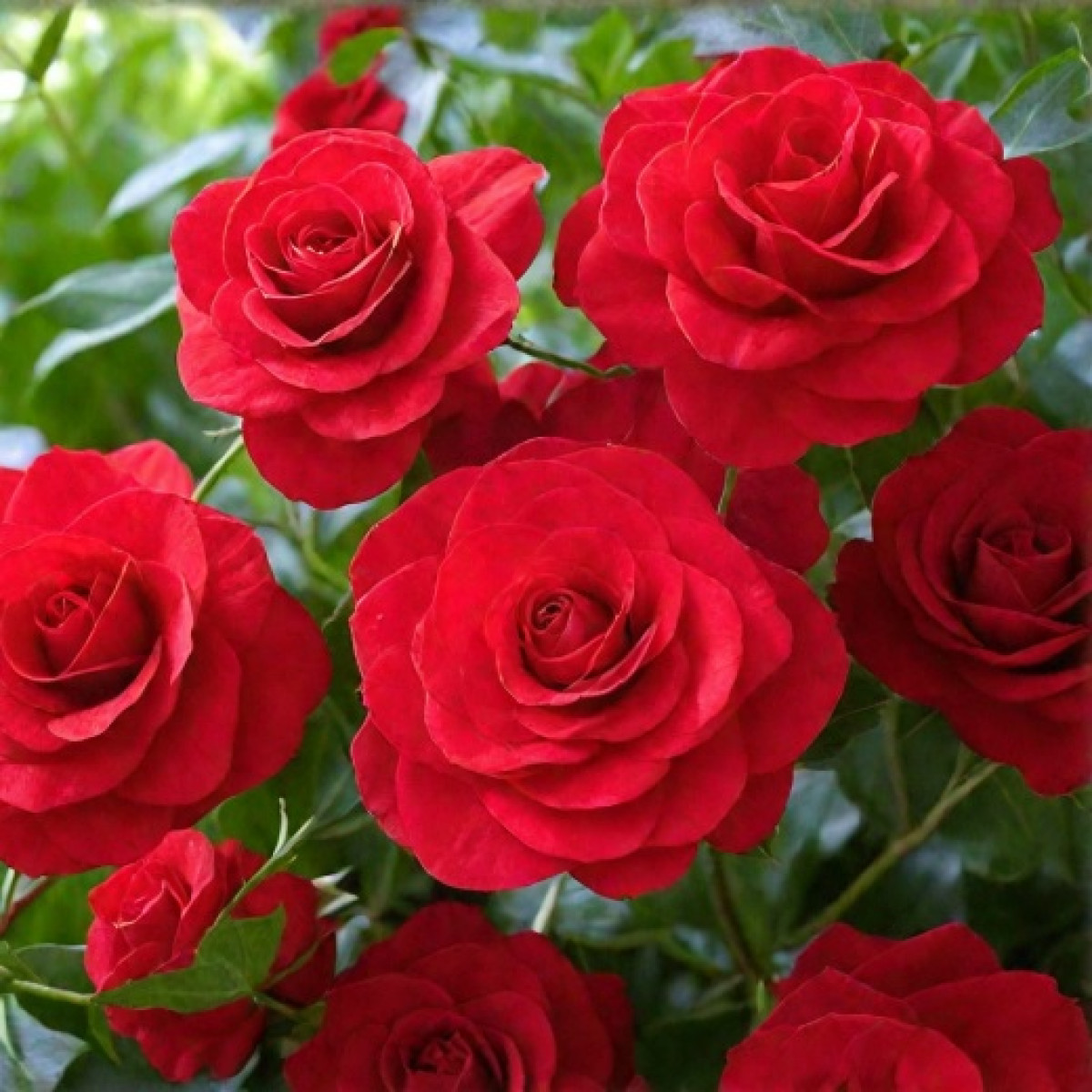 - Роза «Сантана» — это плетистый сорт с яркими огненно-красными цветами.