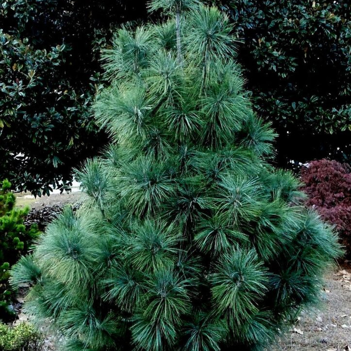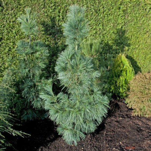 Сосна гималайская "Densa Hill" - компактное медленнорастущее стройное растение, облаченное в серебристую хвою.