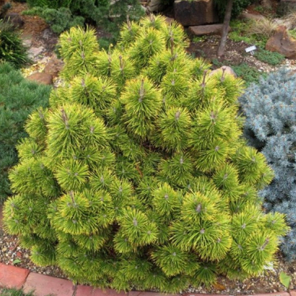 Сосна горная "Zundert" - декоративный карликовый сорт с оригинальной хвоей. Весной, летом и ранней осенью она темно-зеленая, и только кончики разукрашены желтым. С наступлением первых заморозков длинные иголки начинают желтеть, и к зиме становятся ярко-желтыми. Всю зиму желтая сосна украшает сад. Крона плотная, асимметричная, овальная, конусовидная. Растет медленно, не более 10 см в год. В 10 лет ее рост не превышает метра, а диаметр кроны 1,5 м.