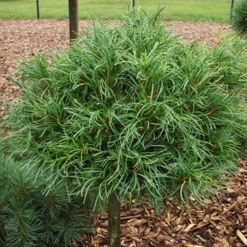 Сосна Веймутова "Green Twist" (лат. Pinus strobus "Green Twist") - карликовая форма. Высота взрослого растения составляет 1,0-1,2 м. Побеги умеренно ветвятся и равномерно разрастаются во все стороны. Крона оченть густая, шаровидная. Хвоя мягкая, серповидно-изогнутая, голубовато-зеленая. К почвам не требовательна, но предпочитает хорошо дренированные. Относительно теневынослива. Требовательна к влаге.